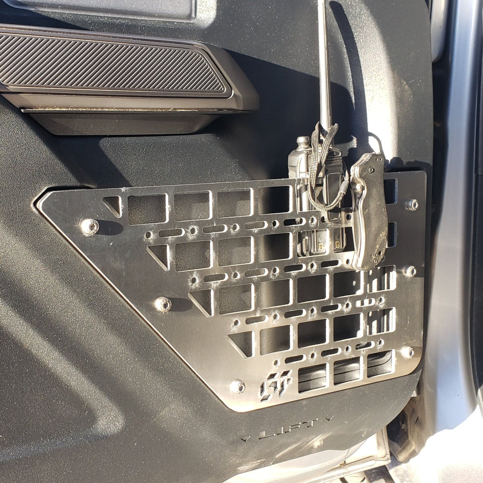 Upgrade your door storage with our Front Door Pocket Molle Panels. Experience increased storage capacity while offering a sleek and practical solution for mounting your favorite Molle accessories. Compatible with 2 Door and 4 Door Bronco models.